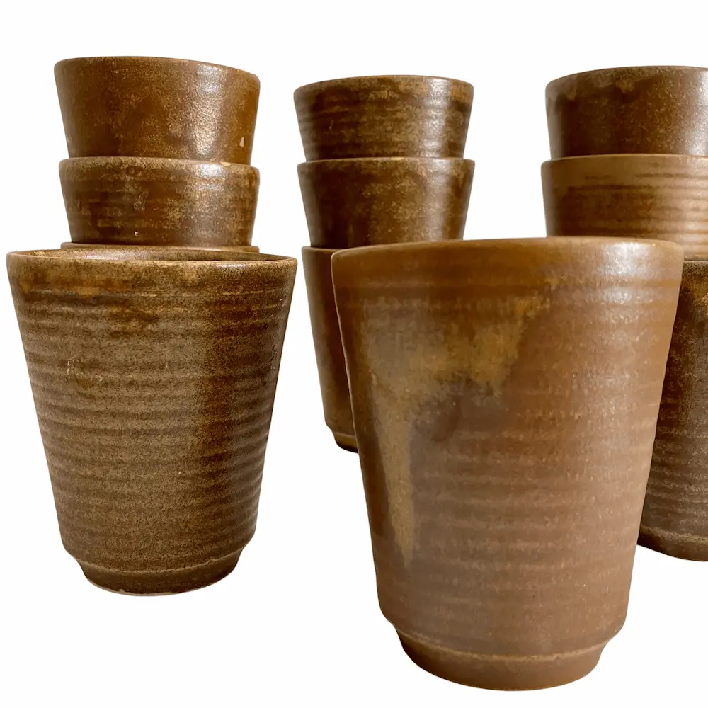 Gobelets en grès anciens que l’on peut utiliser en tasse à café. Certains sont estampillés Digoin France.