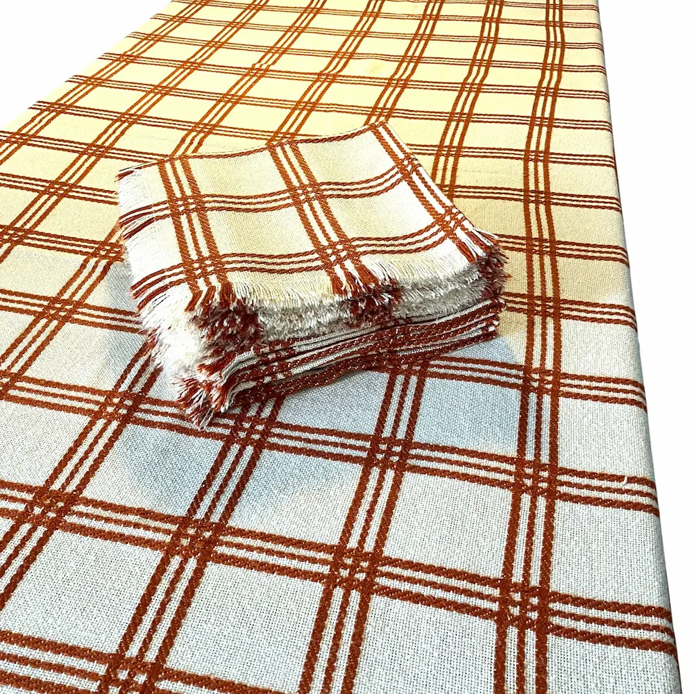 Grande nappe motif Basque + 12 serviettes de table. Marque Georges Moutet – Made in France, tissu 100% acrylique. Couleur beige et terracotta.