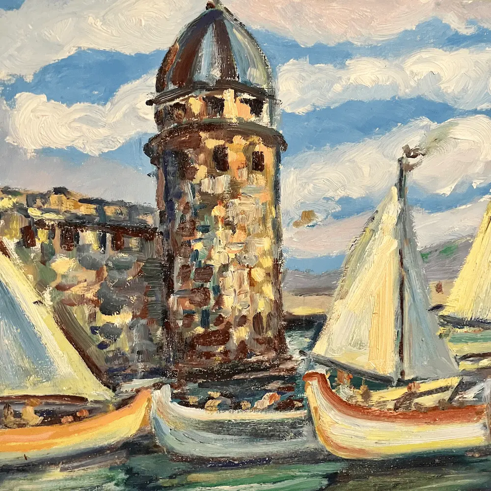 Adorable vase, coupe en faïence bleue et or datant des années 50 et fabriqué par la manufacture de Salins Jura France – modèle Orgeval.