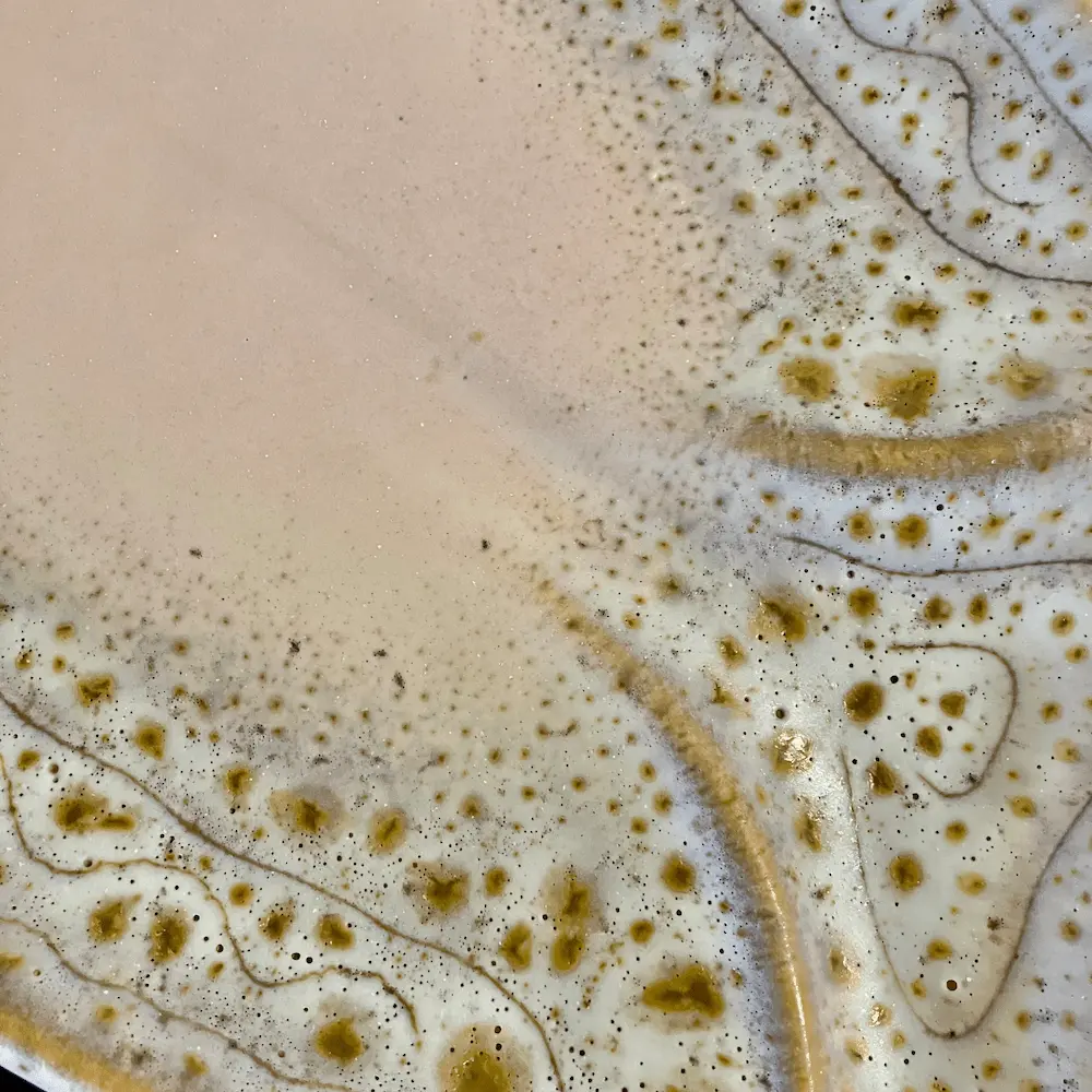 Assiette en céramique émaillée décor floral signée Madeleine Antico des ateliers Sant Vicens à Perpignan.