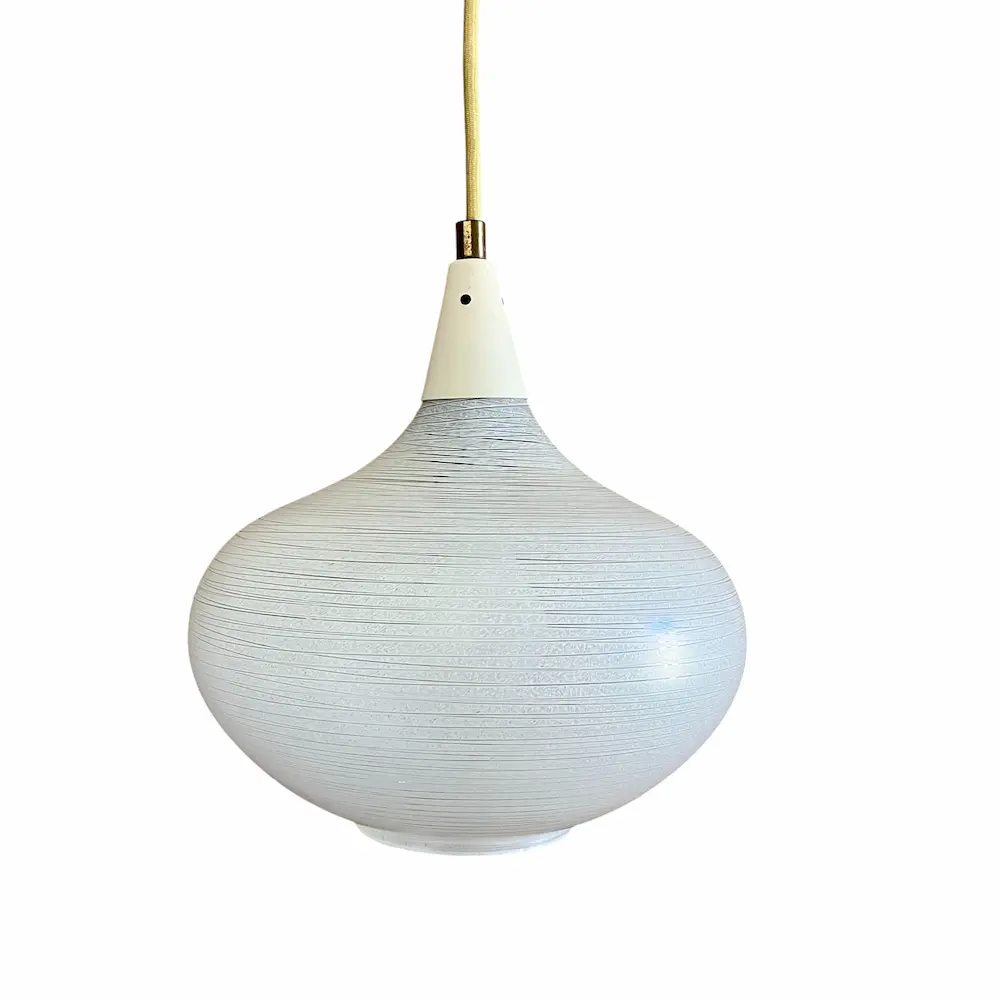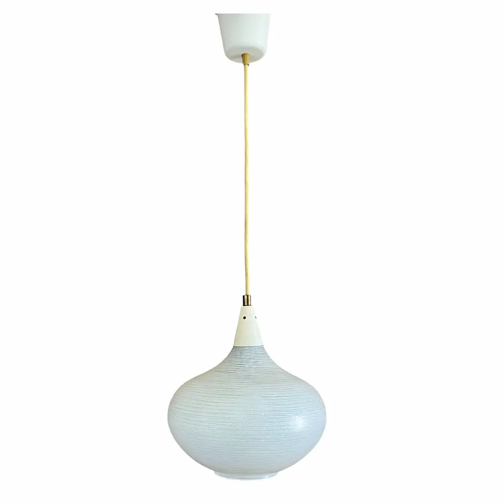 Suspension en opaline blanche striée et métal laqué ivoire datant des années 60 dans le style de Louis Kalff pour Phillips.